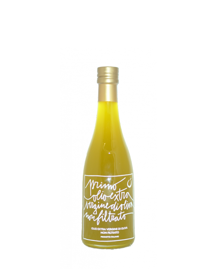 The unfiltered "Primo" extra virgin olive oil is the solution for lovers of Veneto novello oil. The harvest, which takes place by hand, begins in the last days of September, the harvested olives are pressed within the shortest possible time and are bottled immediately, without being filtered to obtain a whole oil. It looks like an olive juice. Pleasant on the palate: strong, rich with intense bitter and spicy notes, typical characteristic of the high content of polyphenols, antioxidants par excellence.